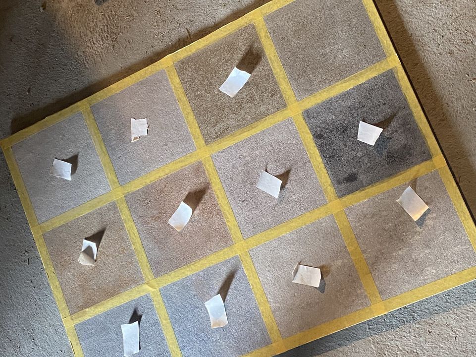 石蔵内に張る床板の塗装を皆さんと一緒に行いたいと思います。90cm角の板を216枚塗ります。