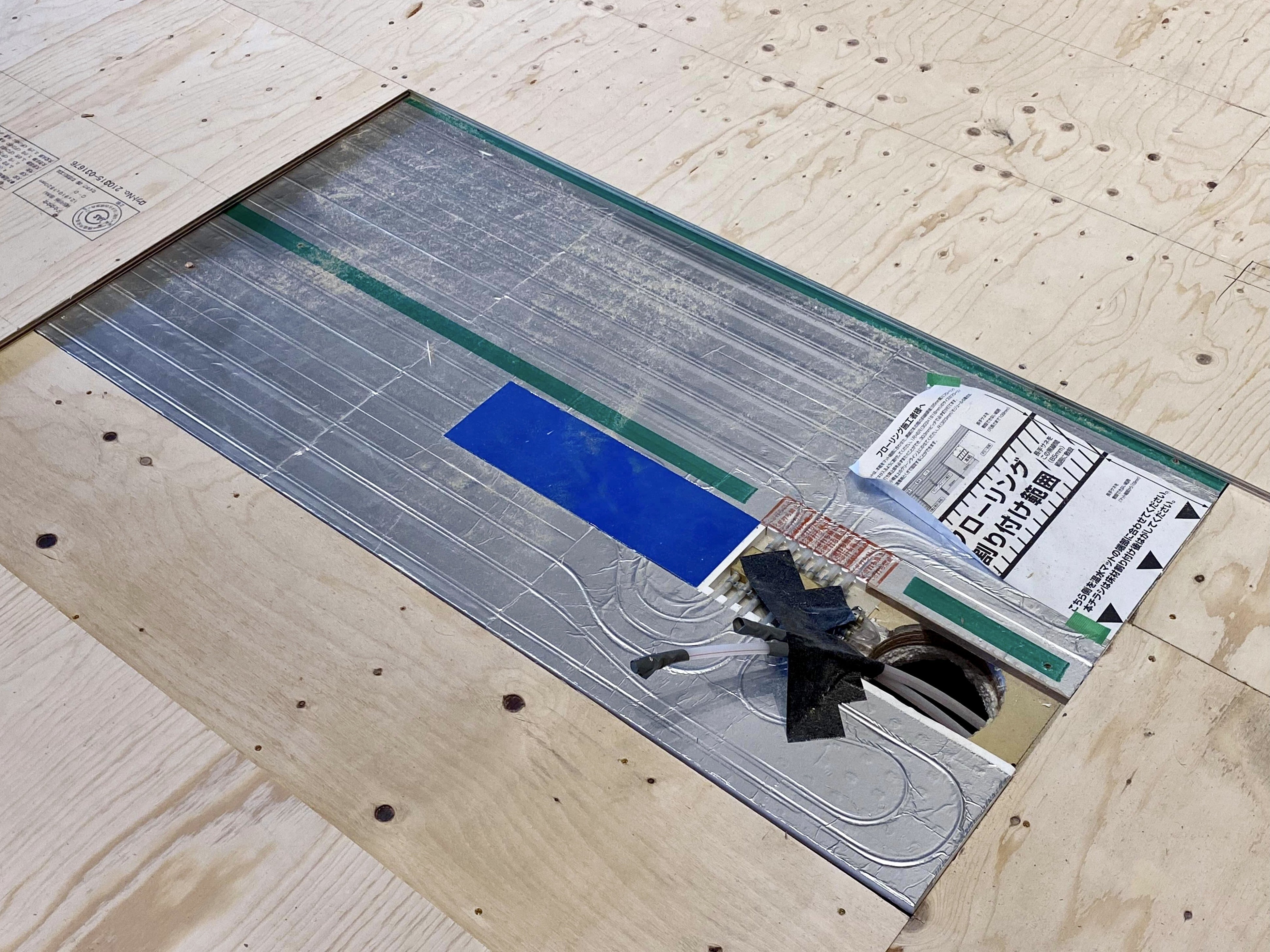 床下を通すホースが長いと温まりづらくなってしまう恐れがあるので、床暖房は3箇所に分けて、それぞれにストーブからホースを繋げてもらいました。