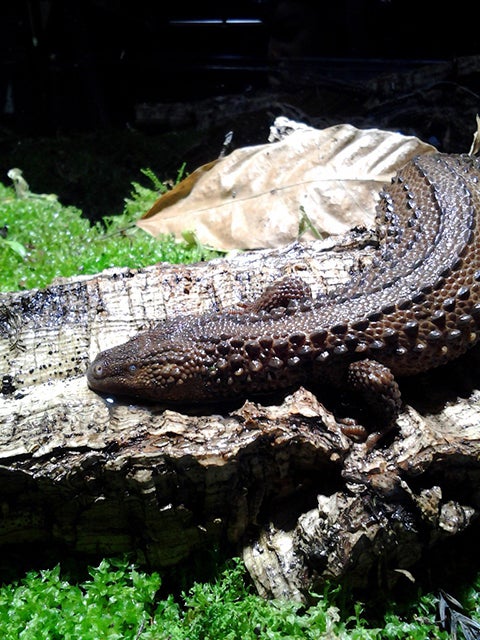 東南アジアの赤道直下、ボルネオ島北西部に分布し、発見例が100例以下という地球上で最も珍しいトカゲです。生きている個体の飼育展示は、なんと世界中でiZooだけ! 世界で初めて繁殖に成功した際は、世界的なニュースになりました。