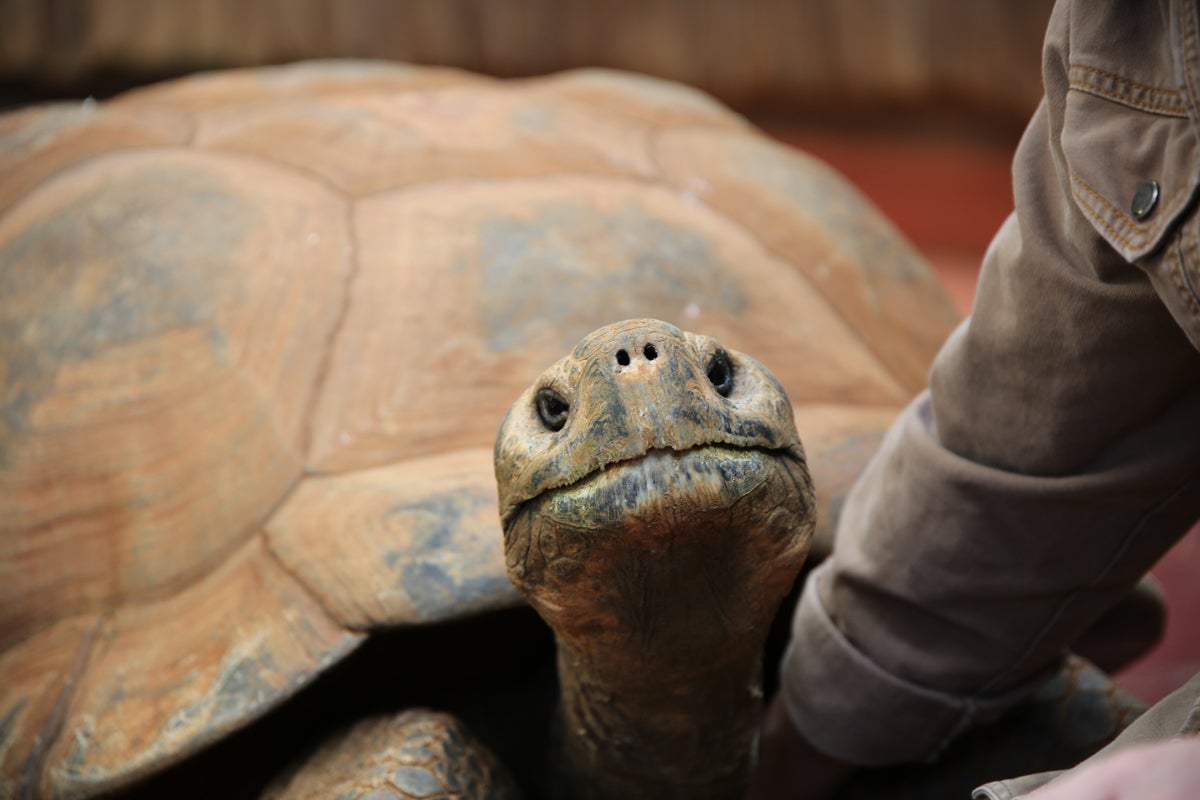 ガラパゴス諸島に生息する固有種で、世界最大のリクガメといわれています。iZooが誇るゾウガメ牧場での存在感も圧倒的! 現在、日本の動物園で飼育されているのは3頭のみ(全てオス)で、そのうちの1頭です。推定年齢は140歳、体重は150kg。現在、繁殖に向けて婚活中です。