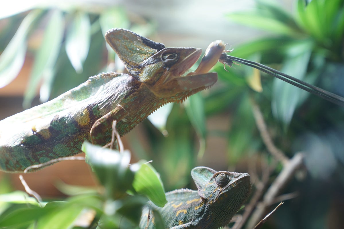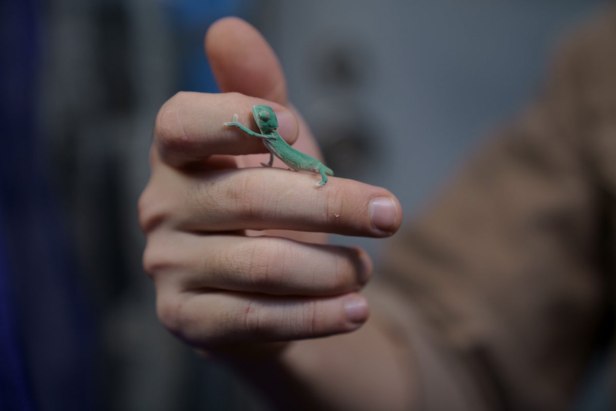 昨年末には、カメレオンの赤ちゃんが誕生しました。生まれた直後は全長1cm程度と、かなり小さいです。かわいらしい姿をお客さまにもお披露目したいのですが、実はメンタルが弱いカメレオンは、見られることがストレスに。ある程度、大きく成長するまでは、バックヤードで大事に飼育しています。