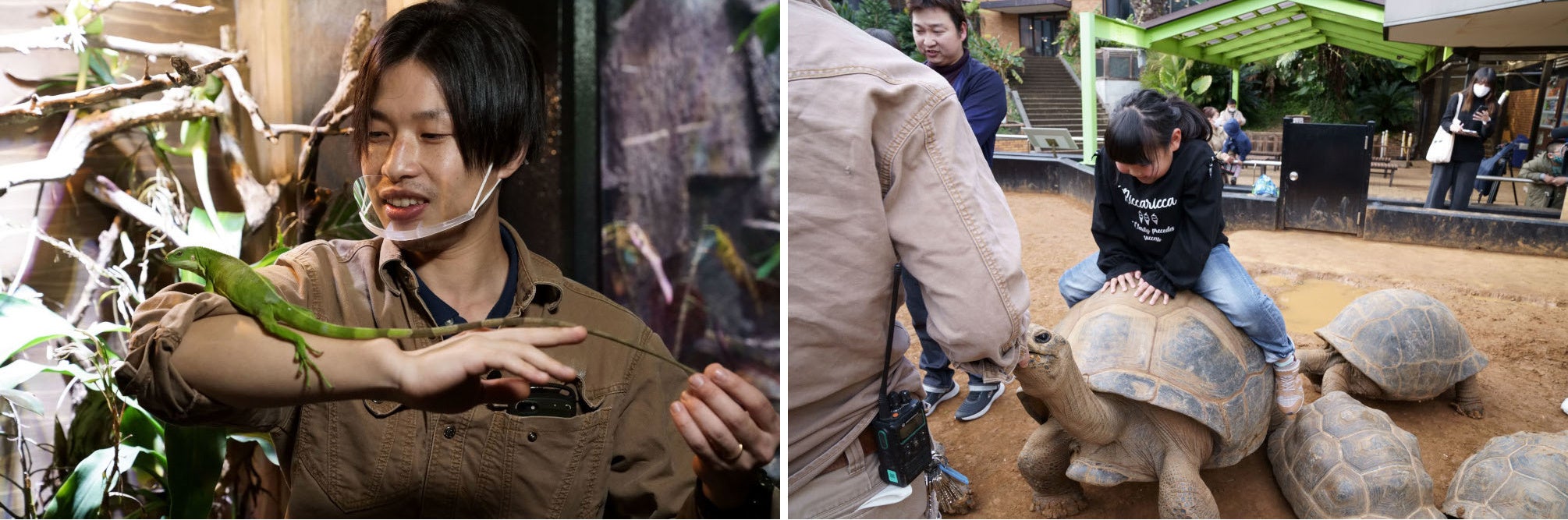 たとえば、子どもがゾウガメの背中に乗ったり、ニシキヘビを首に巻いて写真撮影ができる施設は、日本国内には数えるほどしかありません。中には、驚いて泣いてしまう子もいますし、楽しくて来園する度に撮影するリピーターも多くいます。子どものころにワニやヘビにふれた喜びや驚きは、きっと大人になっても貴重な経験として記憶に残ることでしょう。