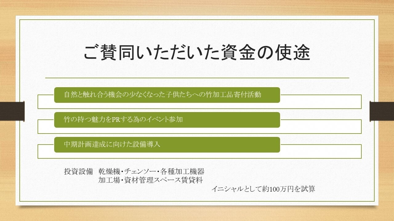ご賛同・ご支援頂いた方には、ささやかではありますが、自然を感じることのできる竹製品を送付させていただきます