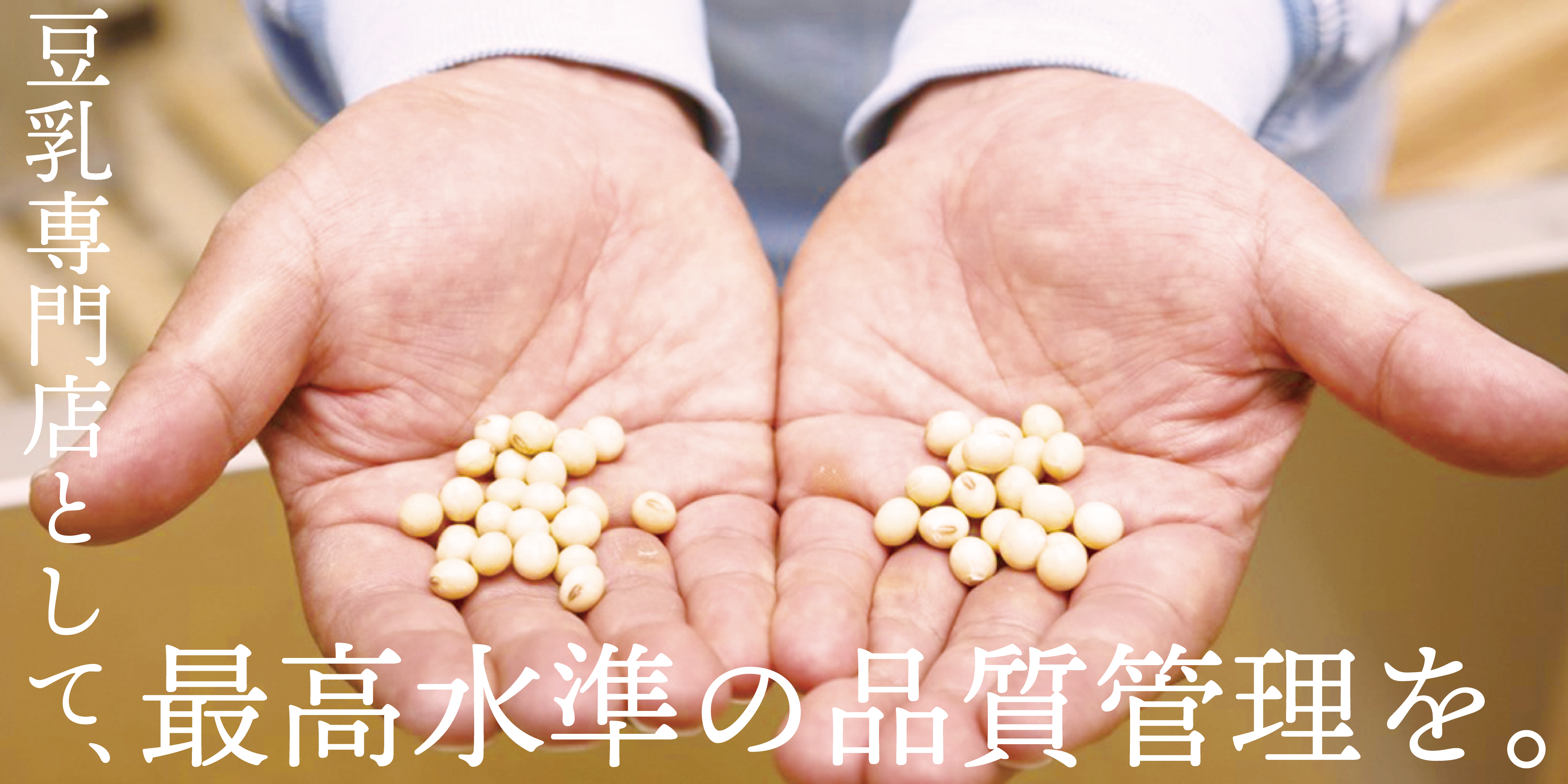 創業前から長年、素材や製法など、豆乳製造に関する研究を重ねてまいりました。今では大阪を中心に多くの料理店様にご使用いただき、大阪市内に直営にて豆乳専門店を2店舗出店させていただいております。また、全国の百貨店でも販売させていただいております。完全無調整・無添加・無消泡で大豆固形分が12%以上ある濃厚な豆乳は、タンパク質を6.3g/100g、大豆イソフラボンを26mg/100gと、非常に豊富な栄養素を含んでおり、特に健康や美容を意識する方々に強い支持をいただいております。また多くの著名人の方や一流の料理人などからクチコミで広めて頂き、ご支援頂いております。