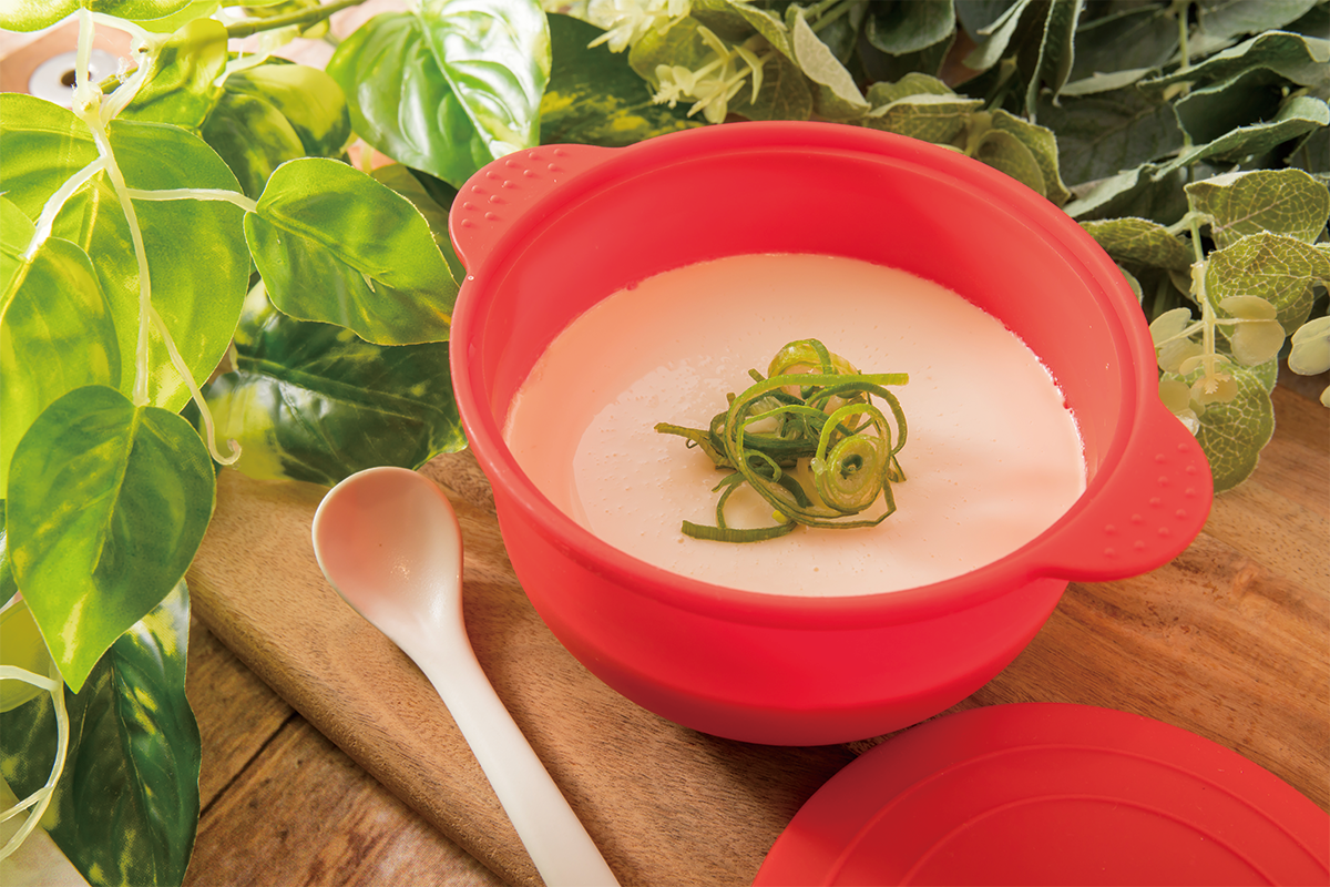 230℃までの耐熱性をほこり、熱を逃がさない。だから電子レンジでの調理や湯煎にかけてもまったく問題なし。外側は熱くなりすぎず、内側はあったかく保温性に優れています。あったかいまま、絶品でヘルシーな本格豆腐のおいしさを最大限に引き出すよう設計されています。