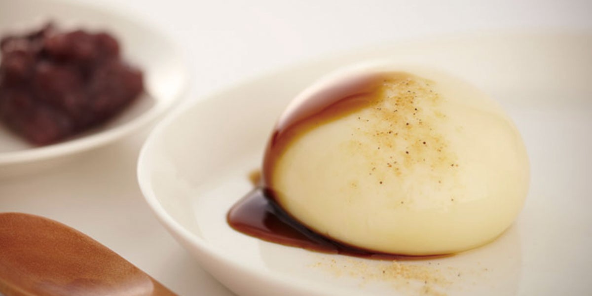 浅田さんも靖一郎豆乳を最初に認めたひとり。「はじめて靖一郎豆乳を飲んだときに驚いたのは、大豆のおいしさ、香り、栄養、それぞれどれひとつ欠けることなく三位一体となっていること。素材がいいので、スイーツに使うならできるだけシンプルなものがいいと思いました。そしてできあがったのが、靖一郎豆乳をそのままプリンにした『大美五豆(オミゴト)』。ヘルシーで口どけが良いとお客さまにも好評です」。