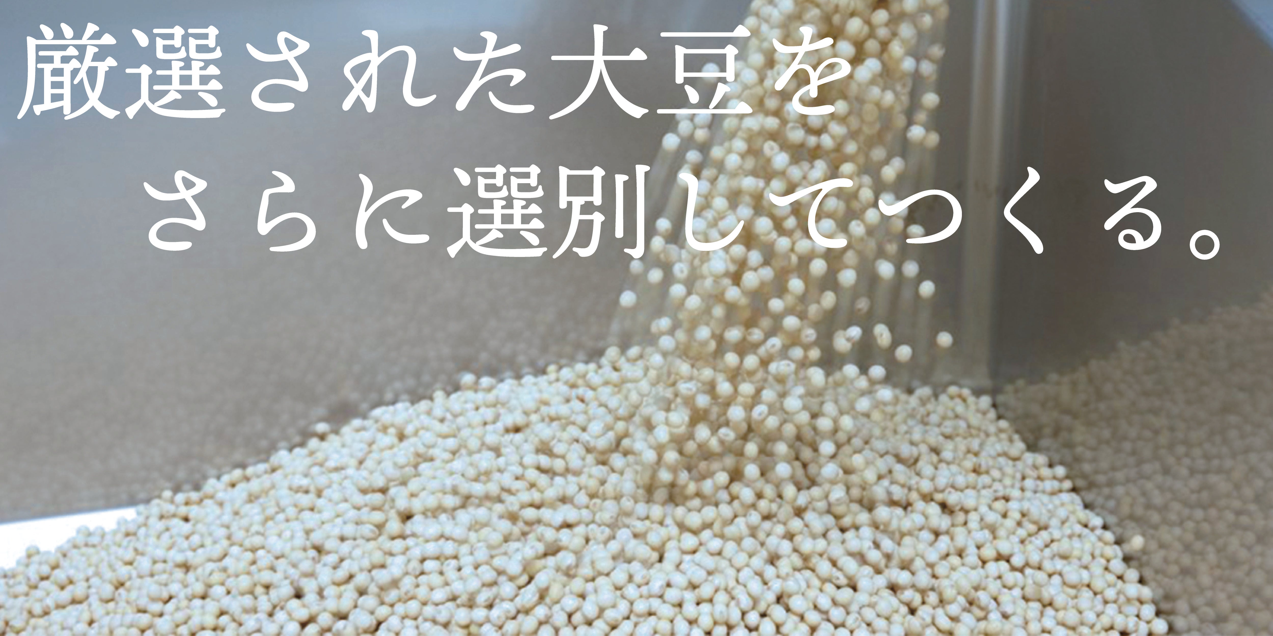 わたしたちは選び抜かれた国産大豆だからといって、そのまま使用するわけではありません。そこからさらに一粒一粒、きれいな丸みと色あいのものだけに選別し、製造機へ投入するのです。わたしたちの素材へのこだわりは、もはや常軌を逸しているかのように思えるかもしれません。ですが、最高の豆乳づくりを目指す上で、それは当たり前のことなのです。