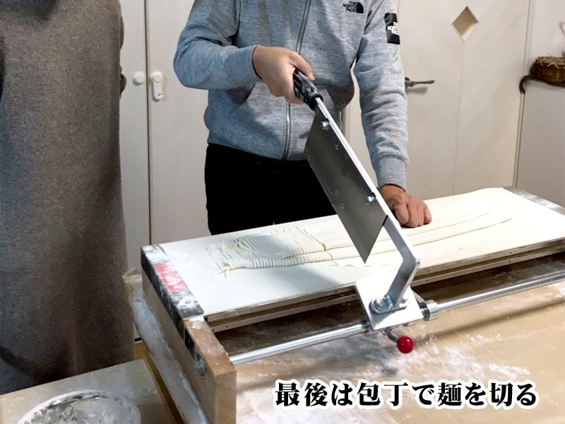 ※使用する材料に関しましては1名様、2名様どちらの場合も同じ量となりますので半分ずつでの製麺作業となります。