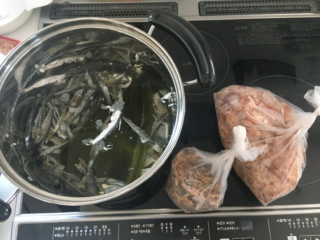皆様こんにちは。今日は明日試食に来る人の為に出汁取ってます。