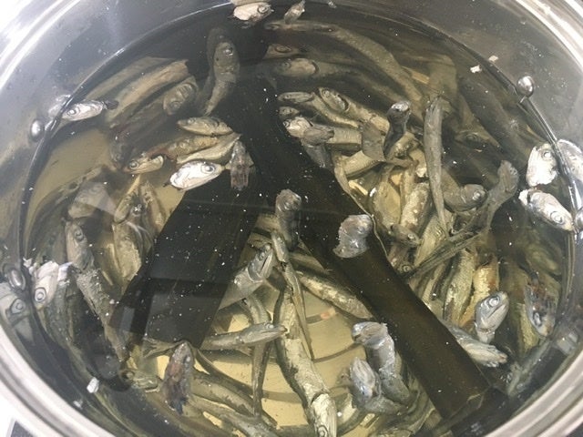 白だしの改良版テストを行ってます。イリコの内蔵を毎日400g取り除くのも非常に大変な作業ですので内蔵の苦味を出さず同じイリコの風味を実現する方法を試しています。