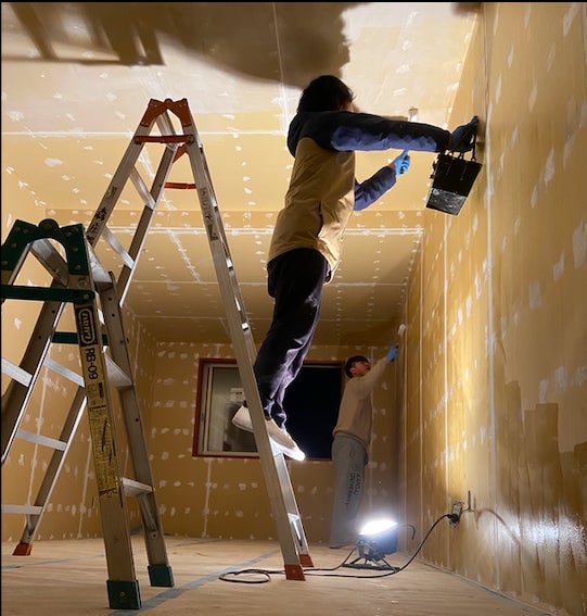 ながぼ荘店主の那須です!宇陀も日中はだいぶ暖かくなってきました!春が近づいてきましたね〜さて、プロジェクトも終了まで残すところ10日となりました。たくさんの方の応援本当にありがとうございます!ながぼ荘は春のオープンに向けて一足早く工事が本格化しています。宇陀の仲間達が夜な夜な手伝いに来てくれて、スケジュール通り作業は進んでいます!写真は左官をする前の準備の作業で、石膏ボードの溝を埋めて平面にするためパテを塗っています。これがまた永遠と思うほどに細かい作業が続きます。(早く作業を終えて温泉に入ってビールを飲みたい。。。)慣れない作業に筋肉痛の日々ですが、クラファンも工事も頑張ります!那須