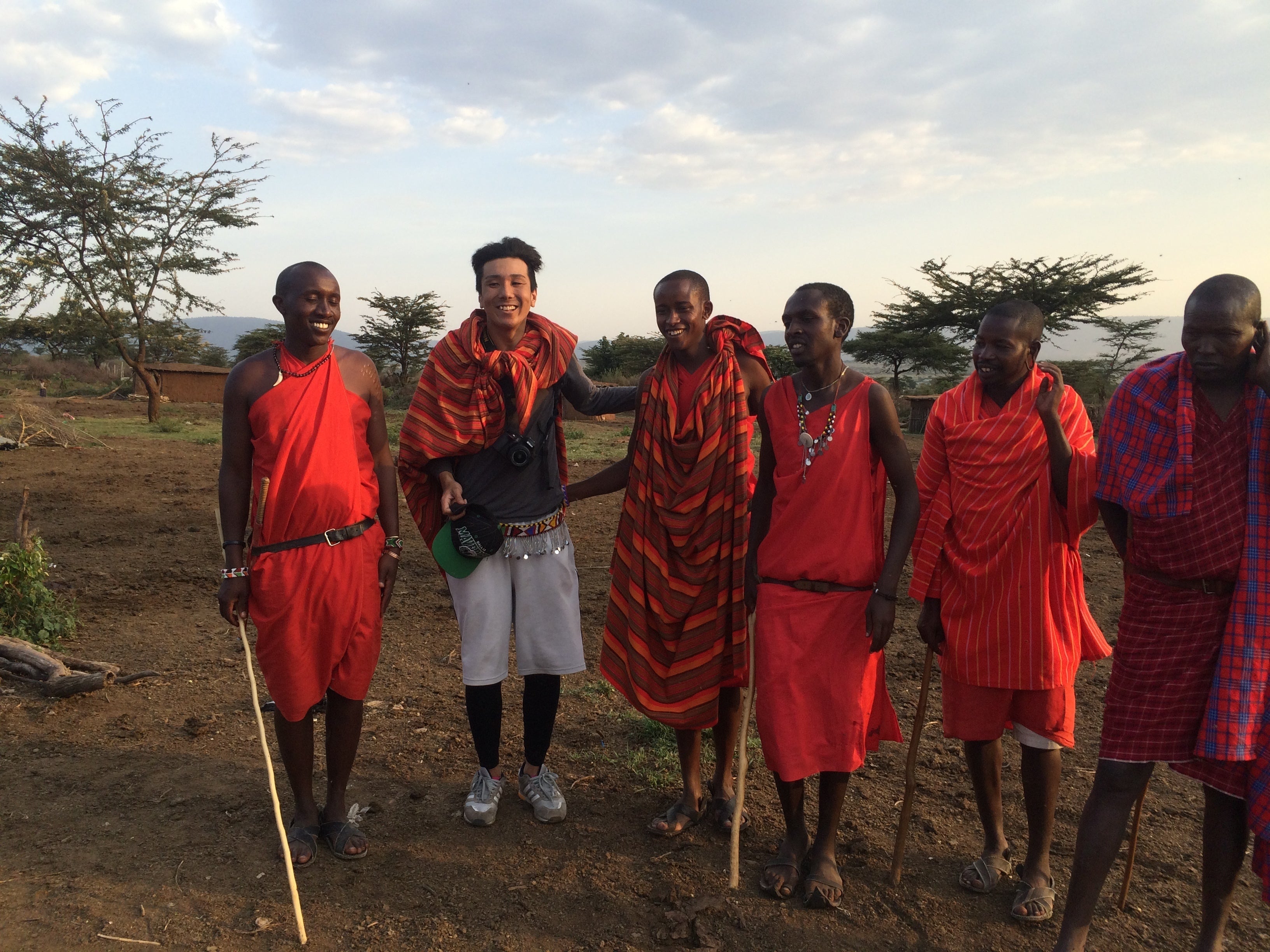 マサイ族と写真を撮るゴッキー(右から3番目)