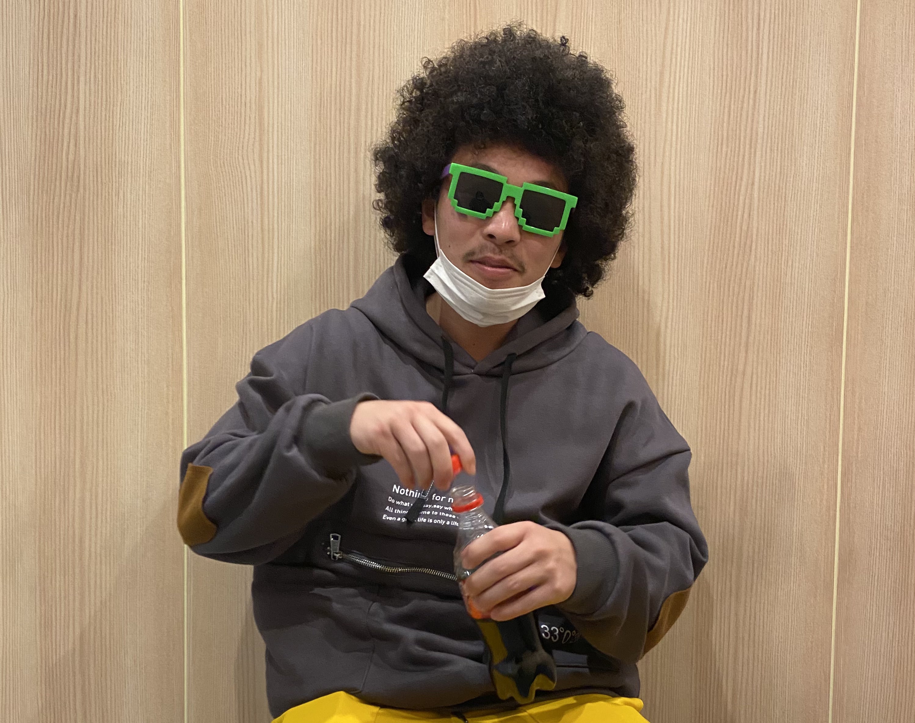 アフロにした直後のよしき。コーラが似合う