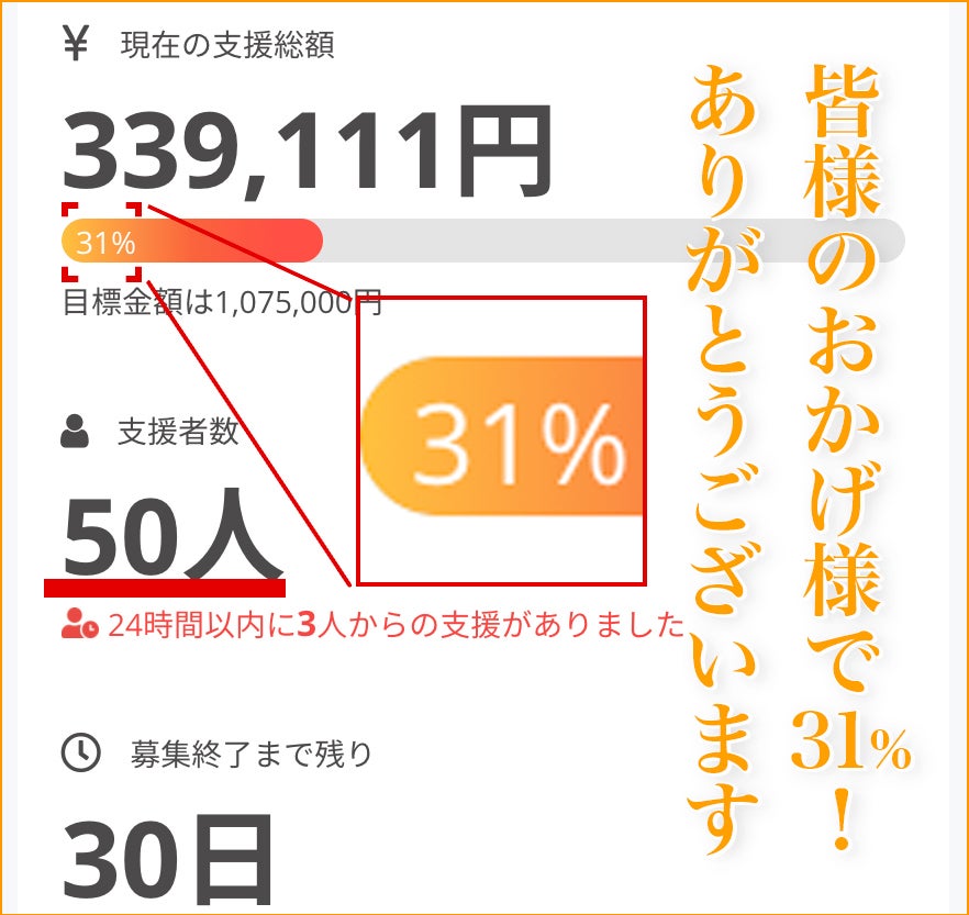 皆様のご支援、応援のおかげです!!