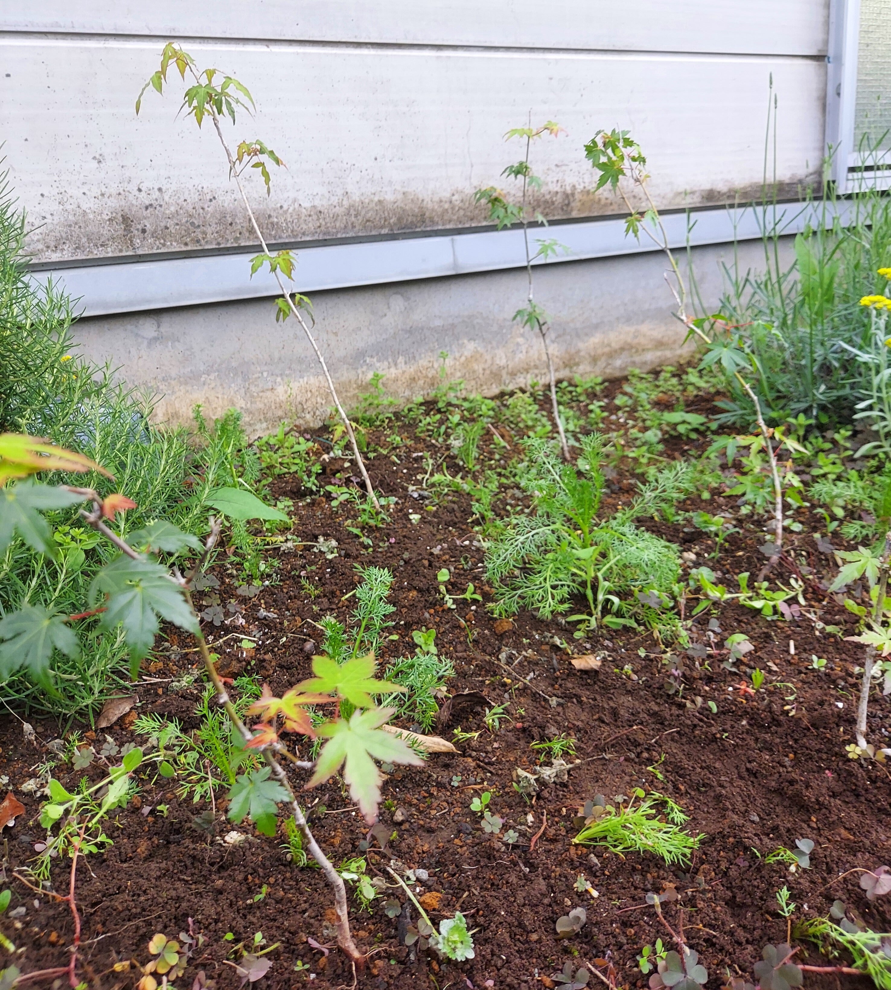 花壇に植えてあるもみじ…わかりにくいですがここに五本あります