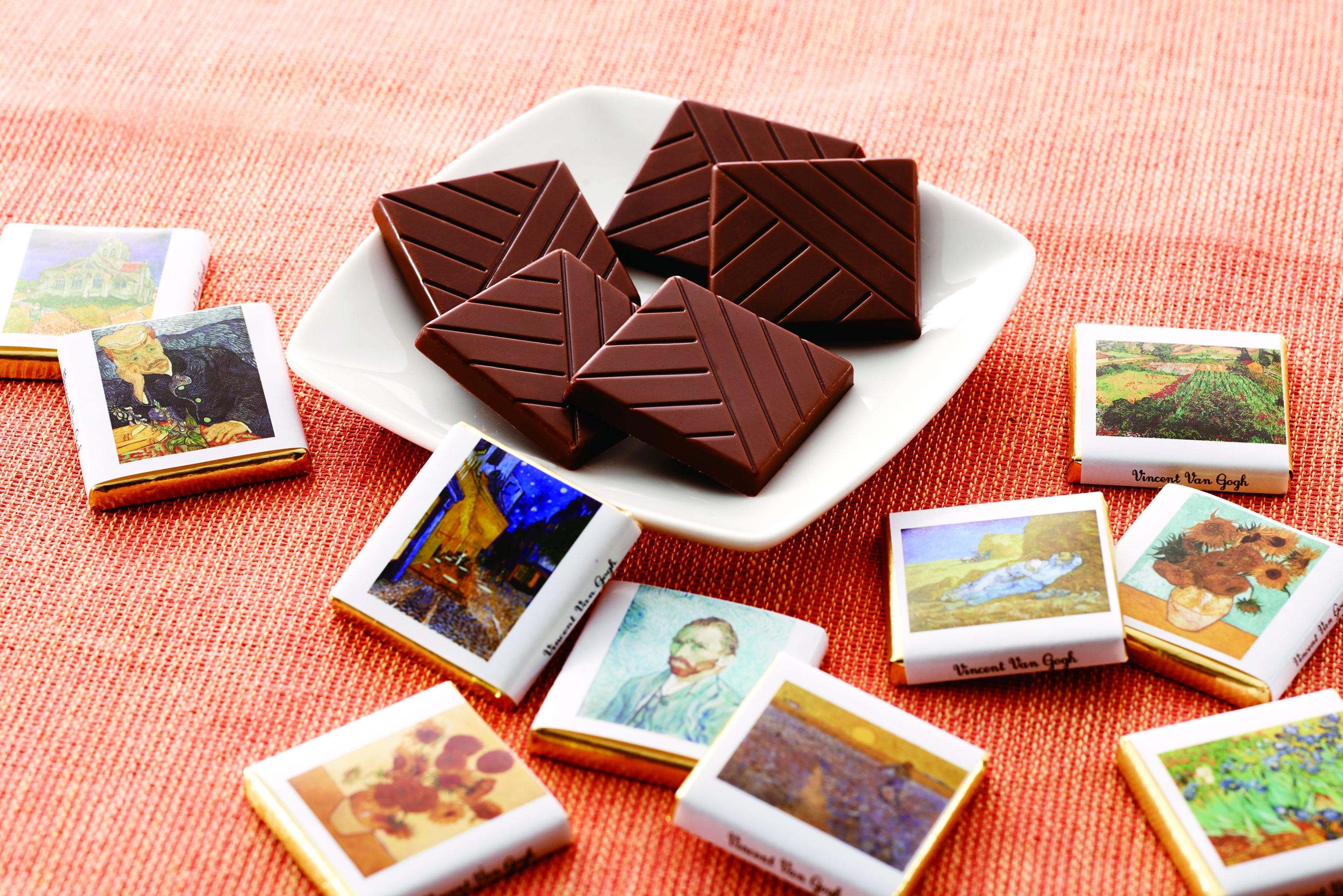 オランダを代表する画家 「ゴッホ」と、タヒチで数々の傑作を生みだした「ゴーギャン」の作品でチョコレートを包んでいます。チョコレートを召し上がりながら、南仏アルルでの約2カ月の共同生活で刺激を与え合った世界的な絵画の巨匠の絵も楽しめます。