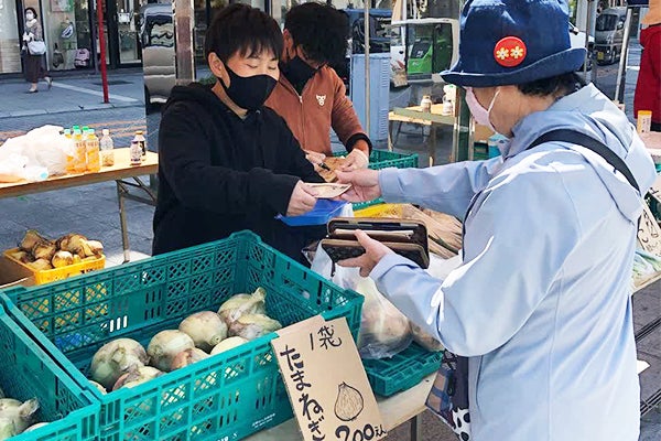 地元の方とおしゃべりしながらジモベジの野菜を販売