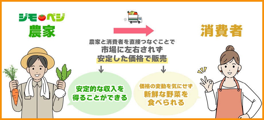 ジモベジの野菜セットは、常に一定の価格に設定できるため、市場の影響を受けません。