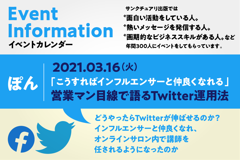 1つ目は、私が3月16日にサンクチュアリ出版様と開催するセミナーを、オンラインで発信することです。実はこのセミナー、コロナの影響で開催できるか分からない状況なのです。