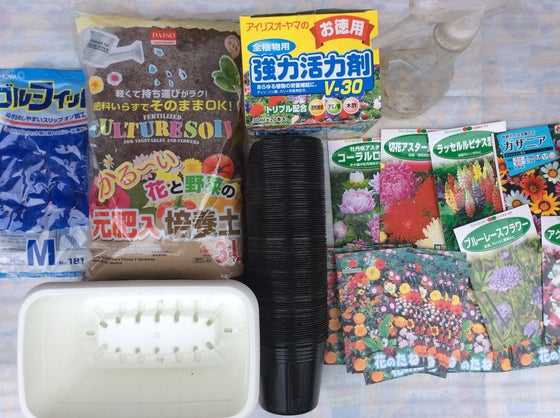 プランター、土、お花の種、手袋、栄養剤、霧吹きなど…