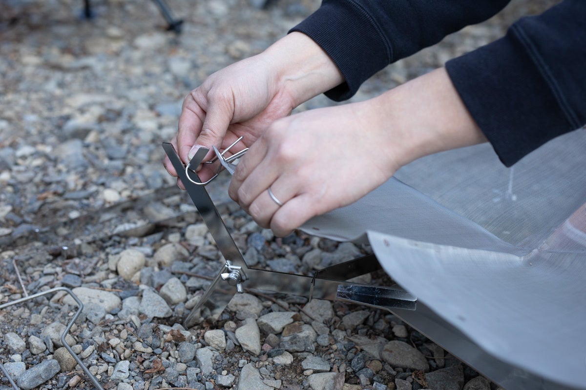 上で調理をする場合は、両サイドにベースを置き、上に網を乗せます。
