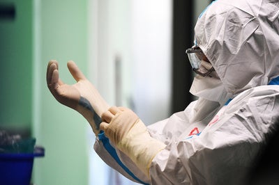 その後、患者様は隔離病床にて遺体収納袋に包まれました。