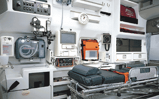 まずは、限られた資金にて「既存の民間救急車」に「救命用医療機器」を車内へ装備。