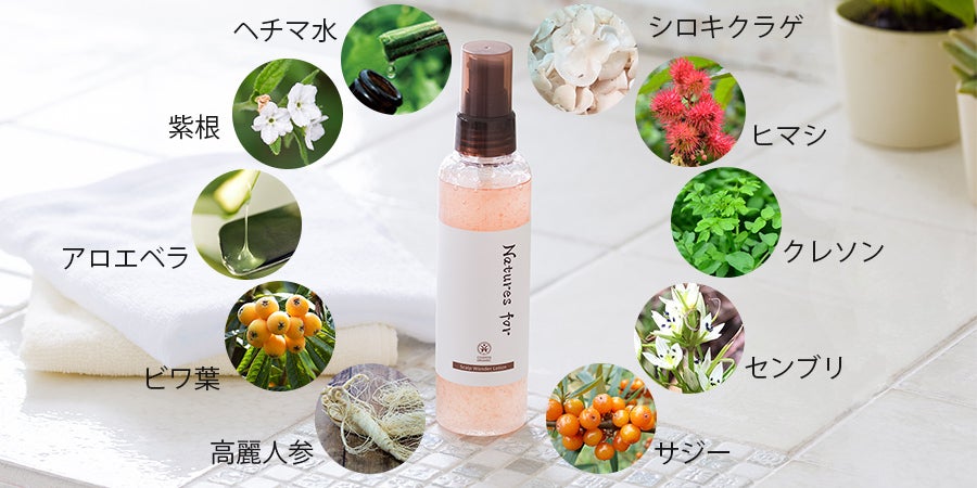 頭皮の柔軟性を保ち、環境を整えるビワ葉やクレソン、高麗人参、センブリなど健やかな頭髪を保つの伝統素材が主原料で、オーガニック植物を86%*以上も 使用した頭皮用ローションです。ヘアカラーやパーマ、整髪料のダメージに、ホルモン変化やストレスなどでダメージを受ける頭皮環境に働きかけます。