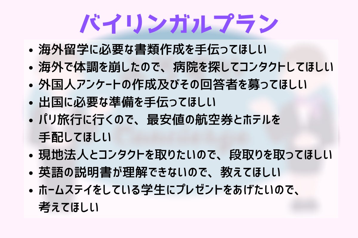日本語をネイティブとする方向けで、英語を必要とする依頼に対応できるプランです。