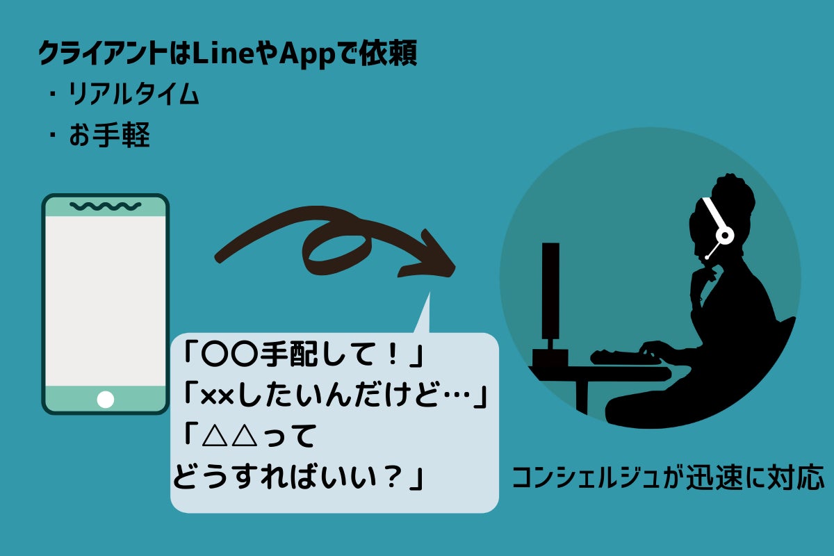 コンシェルジュへの依頼は、Line公式アカウントやApp(未定)でメッセージを送るだけ。