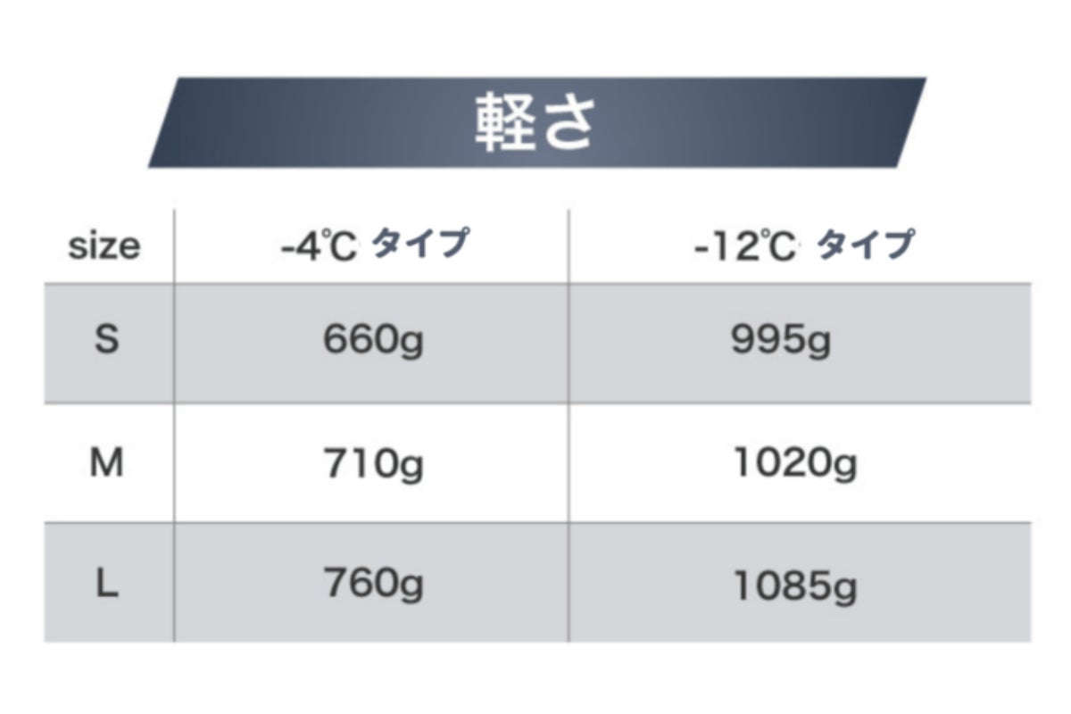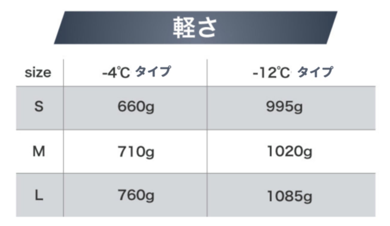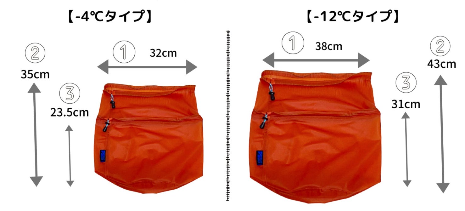 ※まずは-4度タイプと-12度タイプの2種類のどちらかをお選びください。サイズは、応援購入画面へ進むとお選びいただけます。