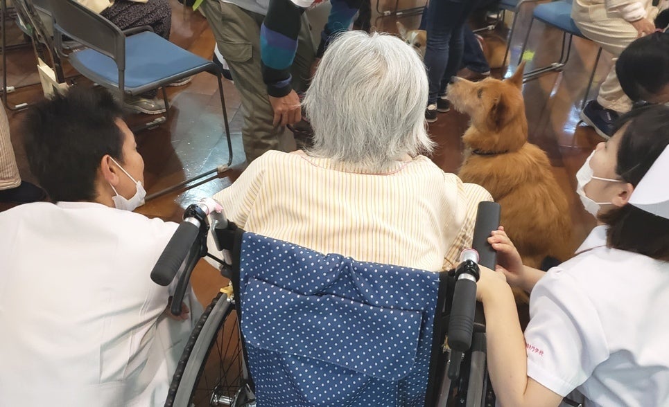 2019年では年間19回、兵庫県内の高齢者施設や病院を訪問し、835人がドクタードッグとのふれあいに参加してくださいました。