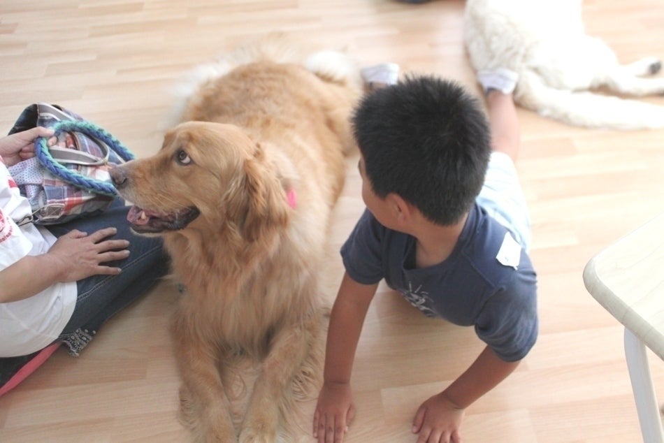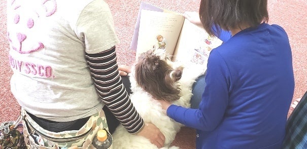子どもが犬に絵本を読み聞かせるR.E.A.Dプログラム