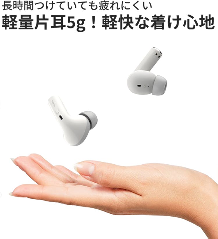 ▶ 片耳5gの超軽量設計で、長時間着けていても疲れにくい。