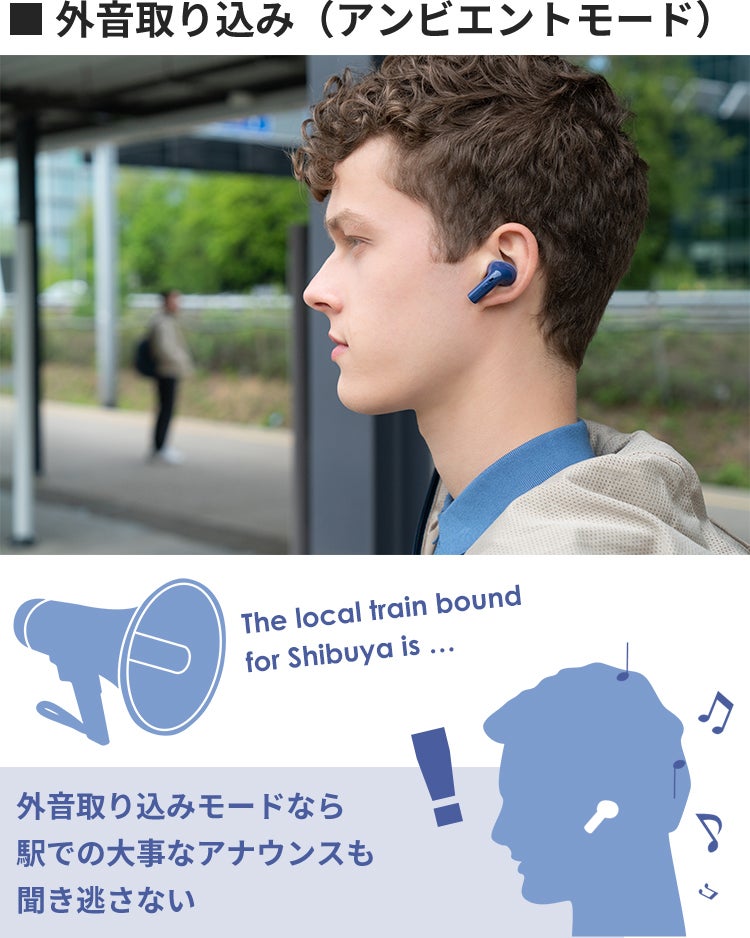 ※必ずしも、外音・アナウンスなどを聞き取れることを保証するものではございません。再生中の音楽のボリュームや、周囲の音の大きさにより異なります。