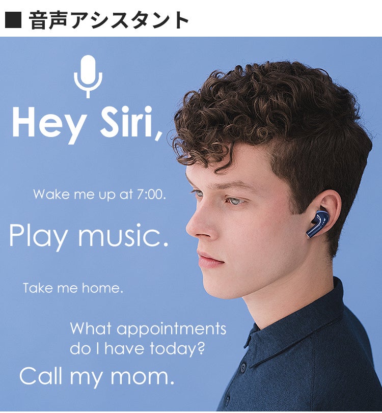 Siri、Googleアシスタントなど、便利な音声アシスタント機能にも対応。左右のイヤホンをどちらでも、3回連続タップすることで起動します。