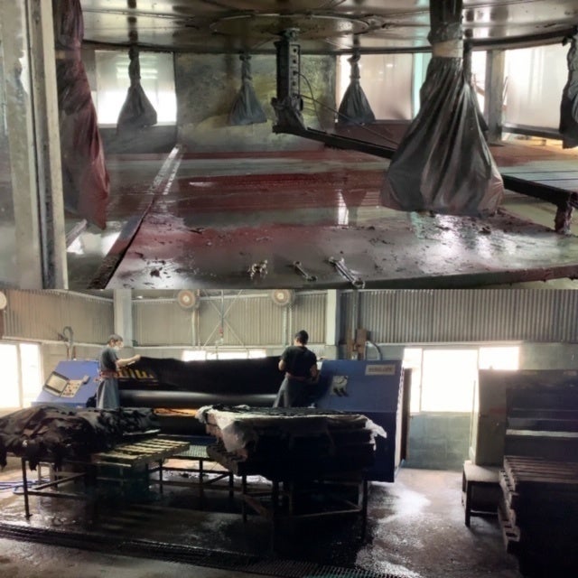 国内屈指の皮革産地でもある「姫路レザー」老舗の株式会社 三昌 様との協力体制のもと、今回使用する内装部分ヌメ革を仕上げていただきました。