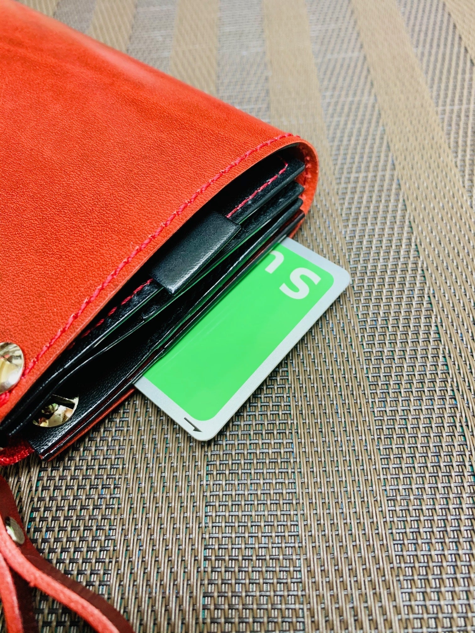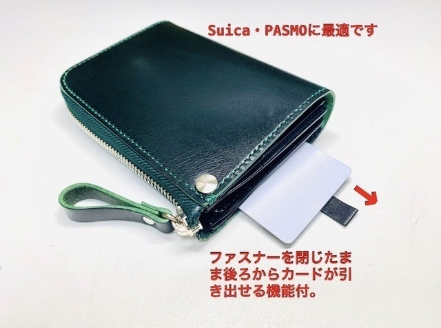 ファスナーの開閉無しでカードが取り出し可能。SuicaやPASMOなど、非接触型決済にも対応しています。