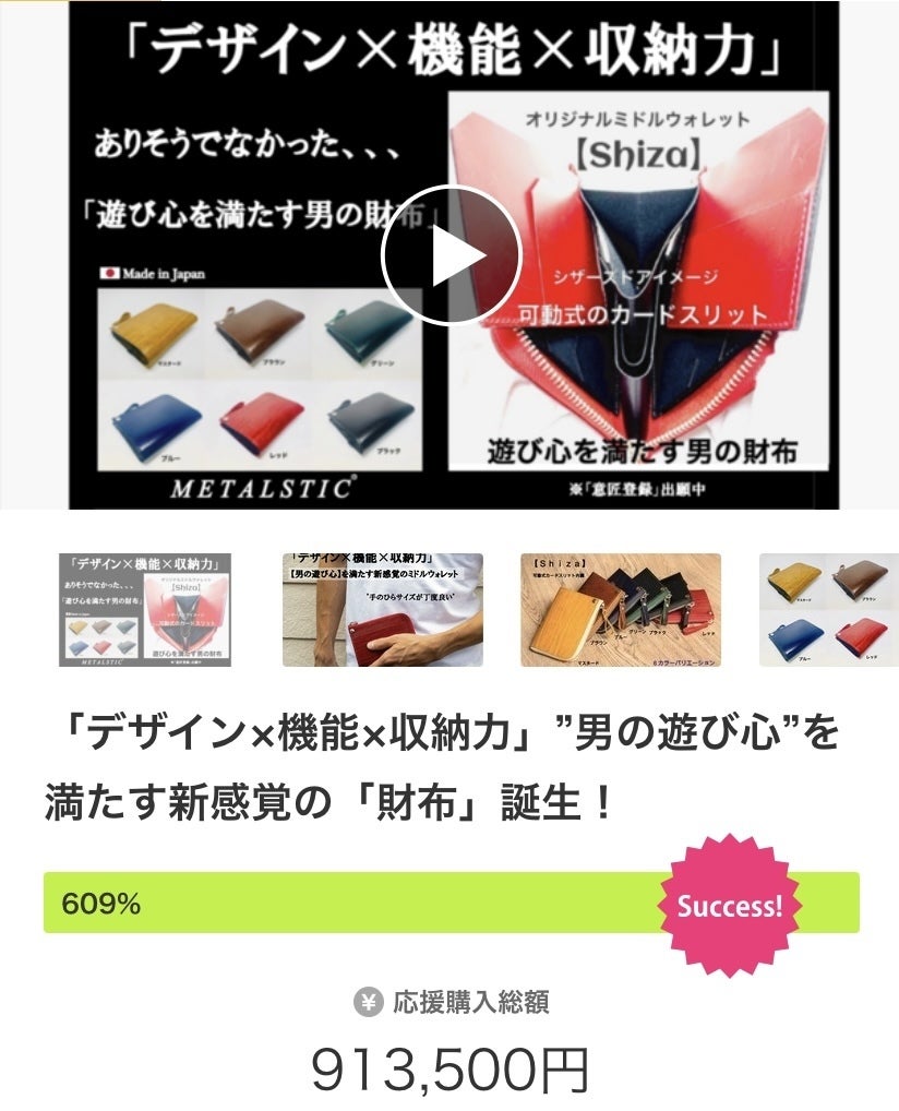 2020年0月にMakuakeプロジェクトを立上げ、初期バージョン【Shiza】で目標金額609%達成。913,500円のご支援をいただきました。