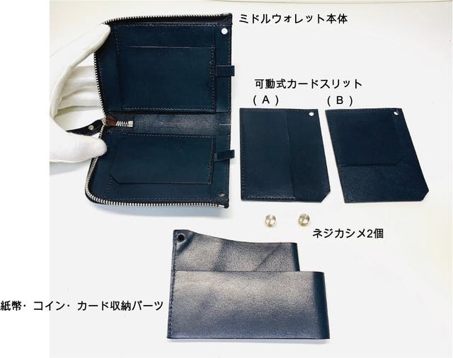 ※出荷時は、ネジカシメを金属専用接着剤で固定しての発送になります。ご使用時ごとに、ネジカシメの緩みがないことをご確認ください。緩んだままでのご使用は、可動式カードスリットが外れてしまう恐れがありますのでご了解の上ご使用ください。