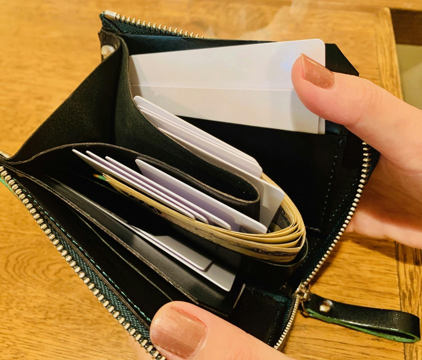 カード14枚とコイン10枚・レシート7枚の収納イメージ