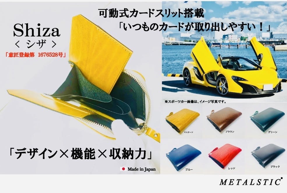 2020年10月に自社ブランド「METALSTIC」メタルスティックの商標登録【登録第6282911号】 を済ませ、2021年1月に今回のプロジェクト可動式カードスリット・ミドルウォレット【Shiza】にて「意匠登録第1676528号」 取得しました。