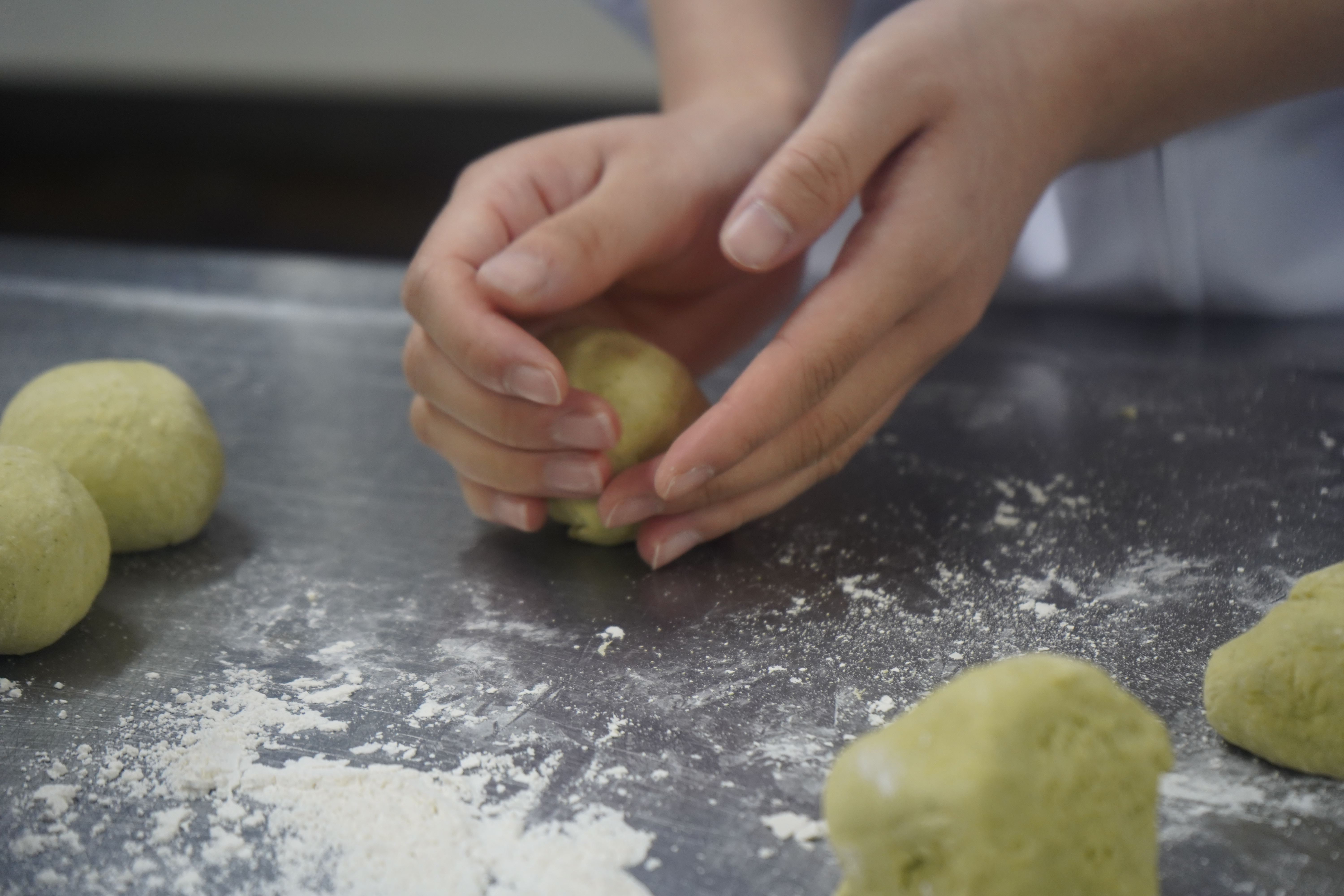 材料を混ぜ、10分~15分程度、全体がまとまるまで捏ねます。