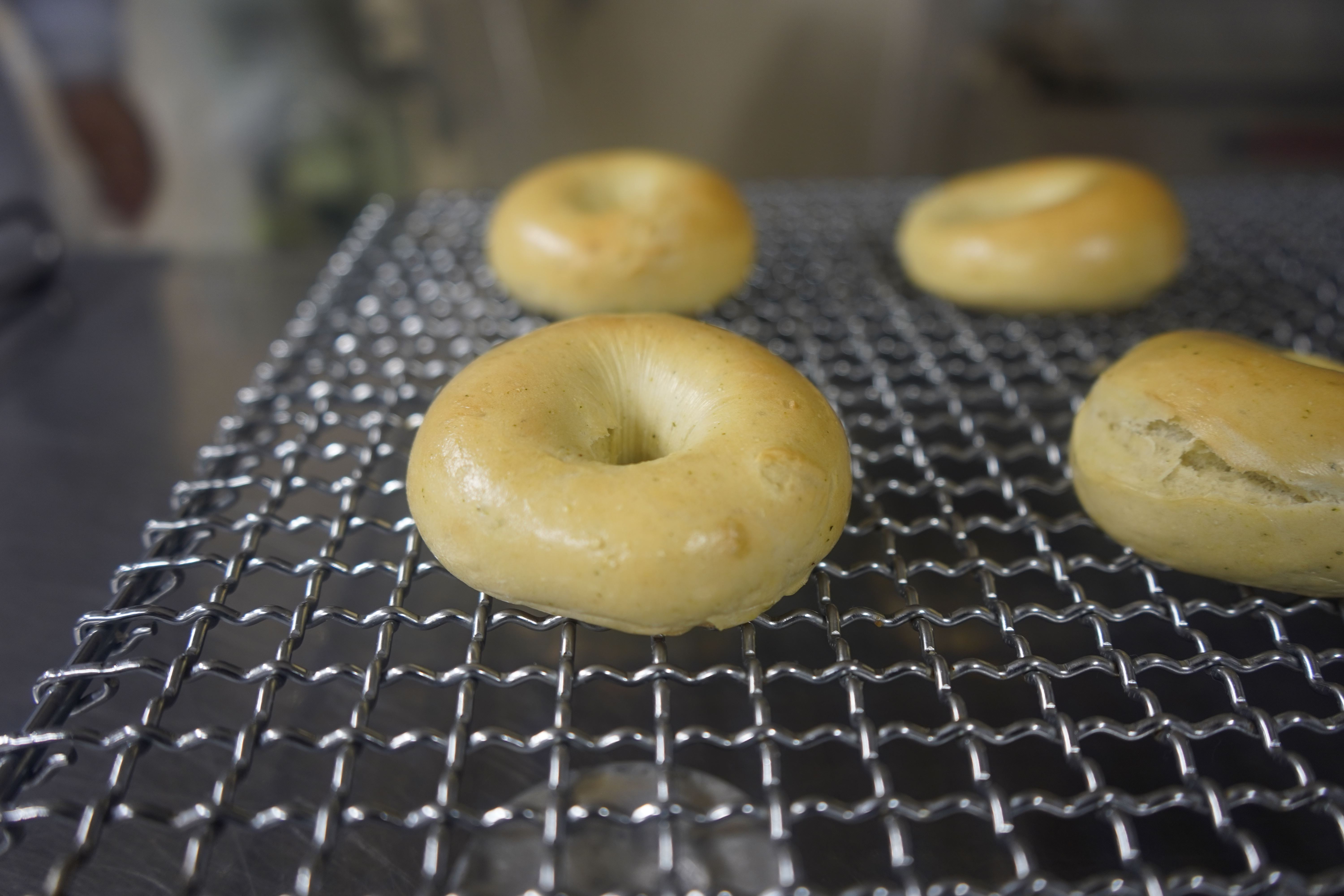 商品開発の一環として、ゴーヤのベーグルを試作しました。