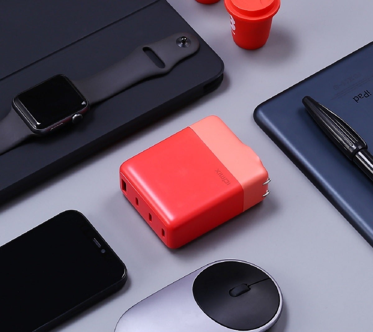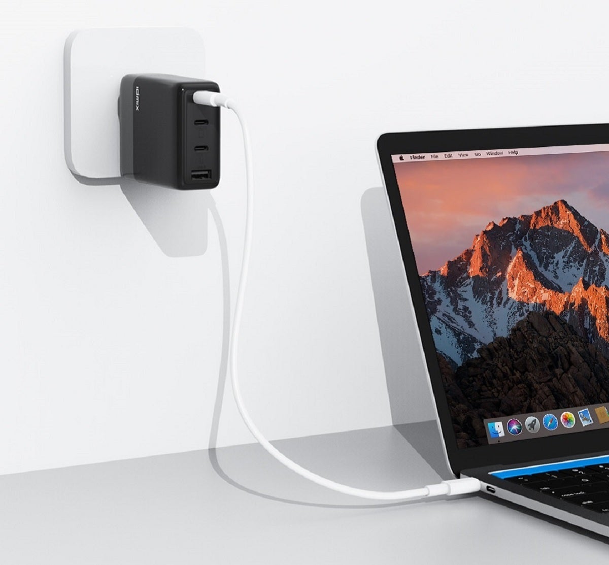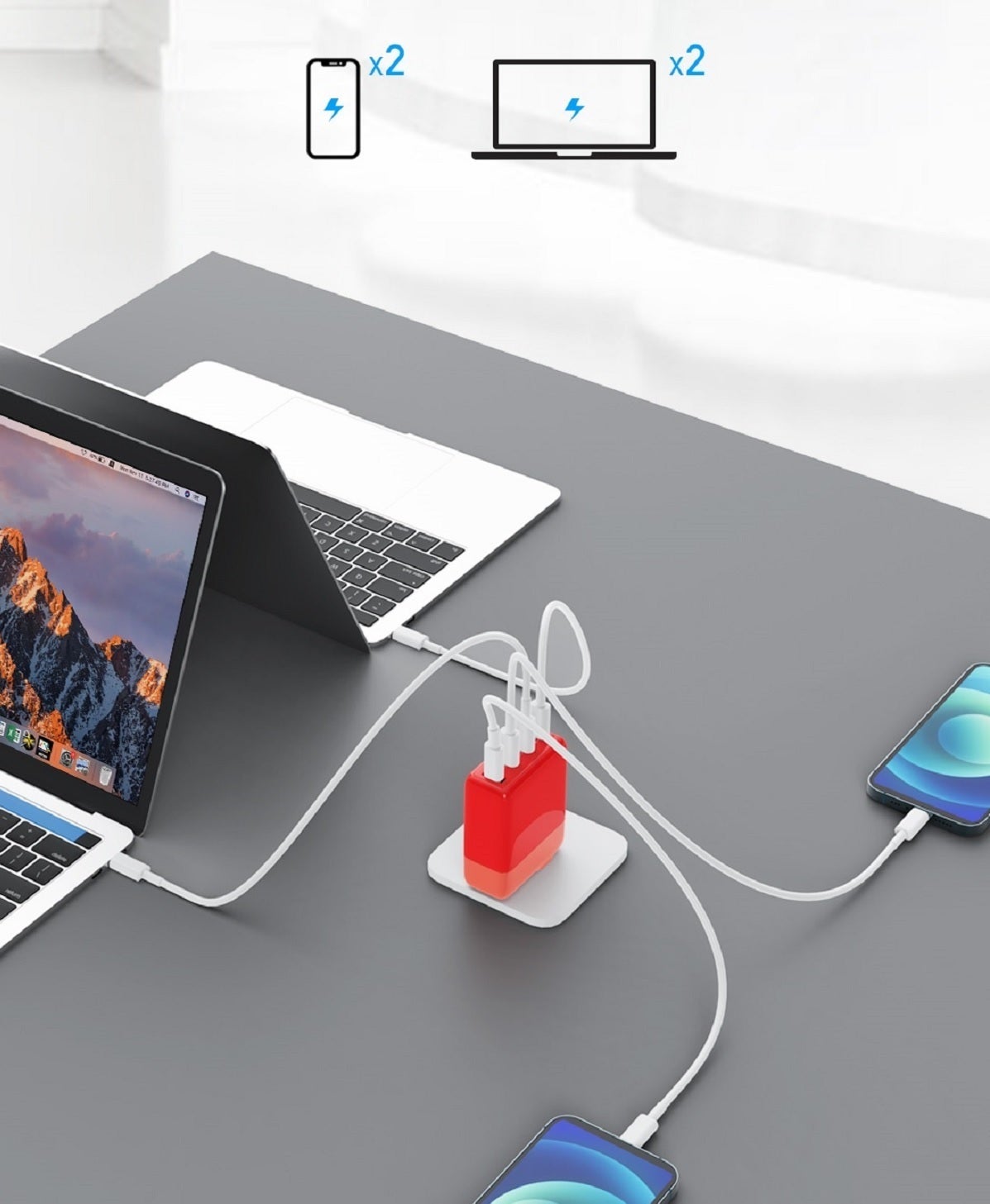 Type-C出力3つ、USB-A出力1つ、計4つの出力を持ち、4台のデバイスを同時に充電できます。