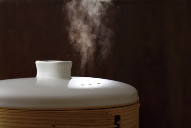 蒸し器は、高温の水蒸気を当て、食品を外側からじっくりと加熱していきます。