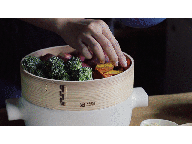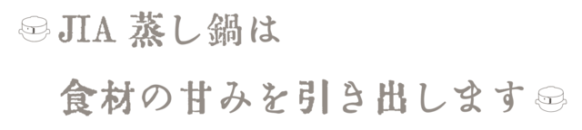 JIA STEAMERは熱効率が大変よいので、中火以下の加熱で温まります。高温での空焼きは劣化させる第一原因ですのでお控えください。
