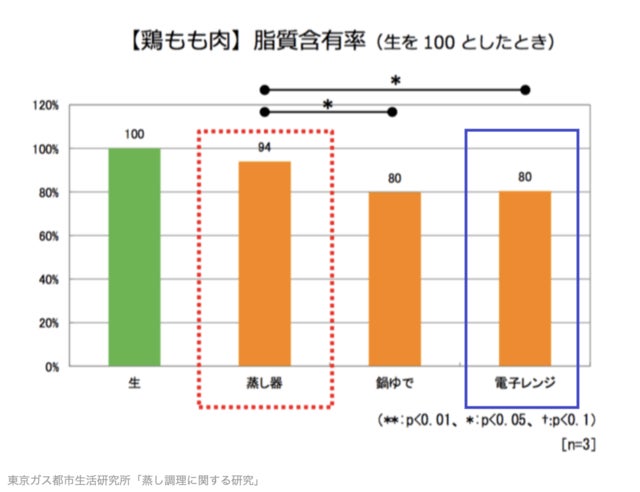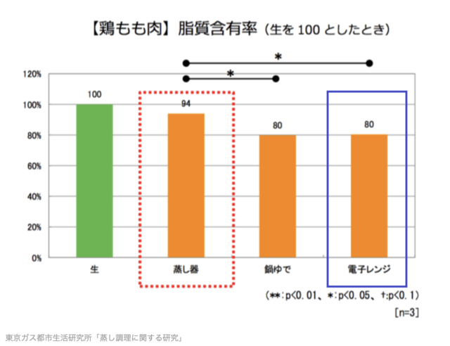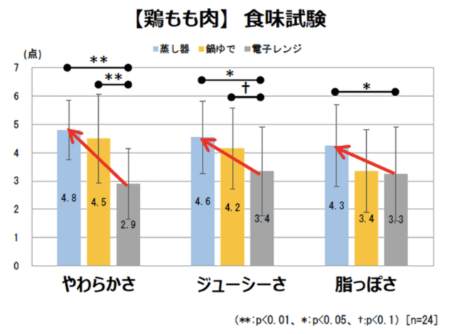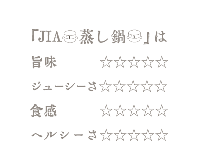 旨味成分やジューシーさや食感を左右する旨味成分を蒸気で閉じ込めることが科学的に実証されています。
