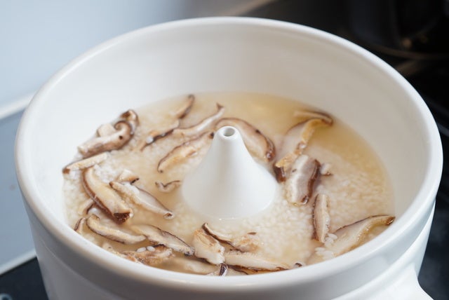 オプションのスチーマーを使えば素材の旨味が下に落ちて美味しい雑炊も作れます。