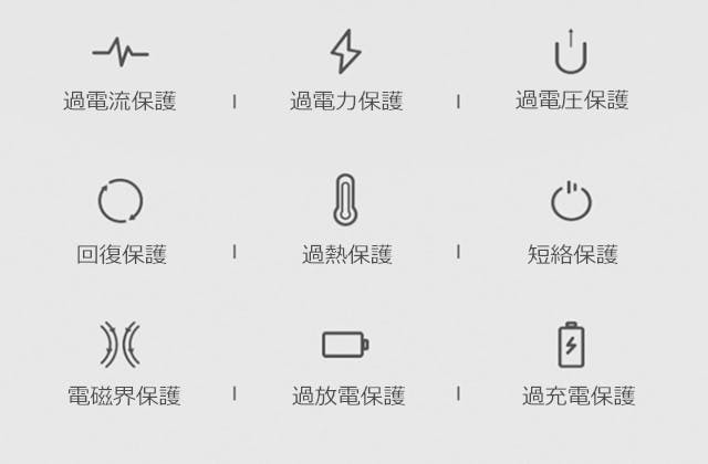 本モバイルバッテリーは充実な安全措置を取り、9つまで保護機能が搭載し、内蔵された高性能ICチップと安全装置付きバッテリーセルにより、過充電.過放電.過剰電圧を防止する機能や、スマホへの過電流保護、高温になるのを防ぐ機能も搭載。またショートした際に自動的に接続を遮断する機能なども付随しています。モバイルバッテリーによって大切なスマホやタブレットに損傷を与えないように配慮されています 。